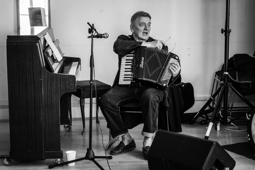 This first set was the rehearsal for Reg Meuross and The Strike preparing for Reg's 'Fire and Dust - A Woody Guthrie Story'. Commissioned and Produced by Pete Townshend, this is a song cycle written by Reg Meuross telling the story of Woody Guthrie's life and times along with several songs taken from Guthrie's own songbook (with the encouragement and blessing of the Woody Guthrie Estate). It took place at the spiritual home of Folk Music in the UK, Cecil Sharp House in London.